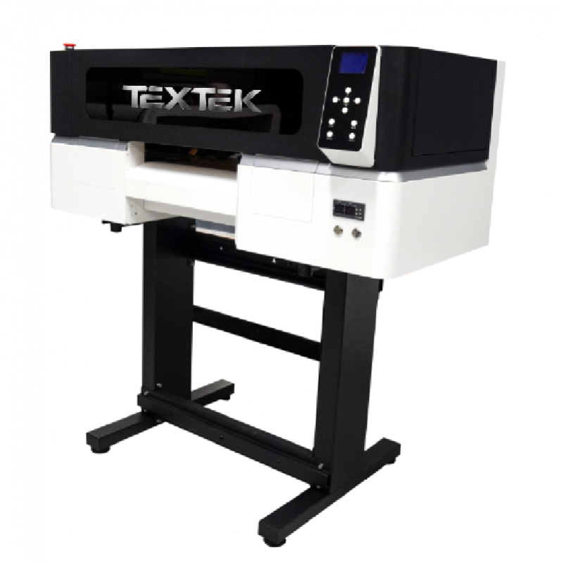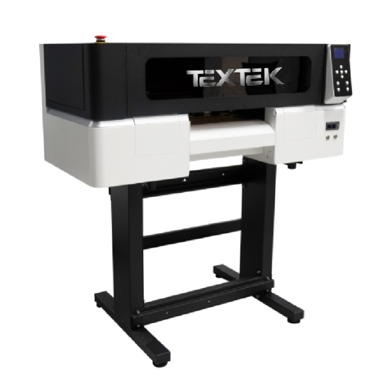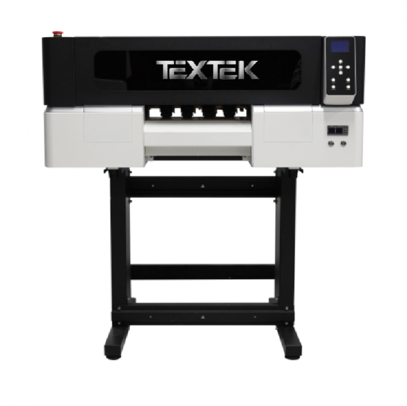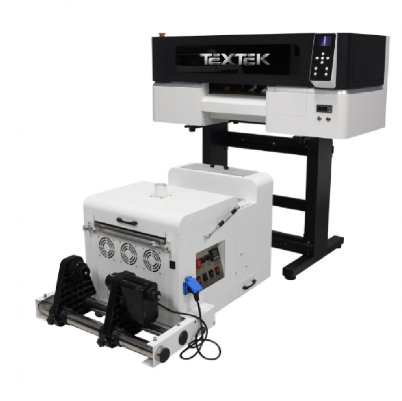 Impresora para DTF Textek T30 con todo lo necesario para personalizar textiles: tintas, polvo DTF y film.