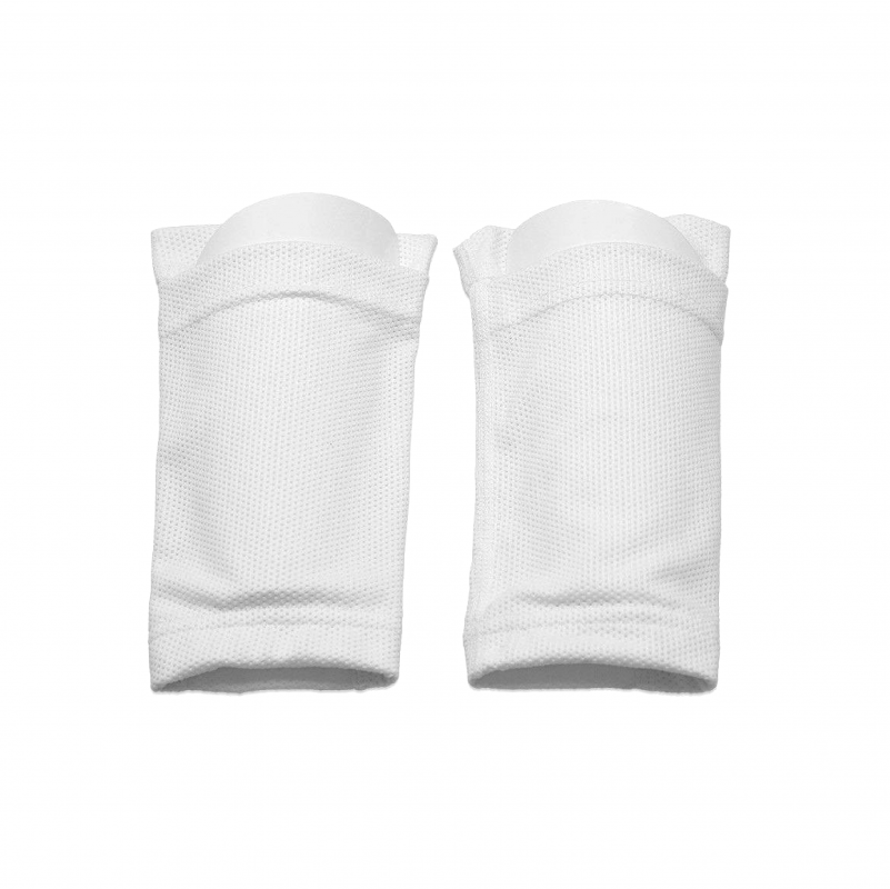 - De tela de 100% poliéster blanca y elástica. Con perforaciones para mayor transpiración.