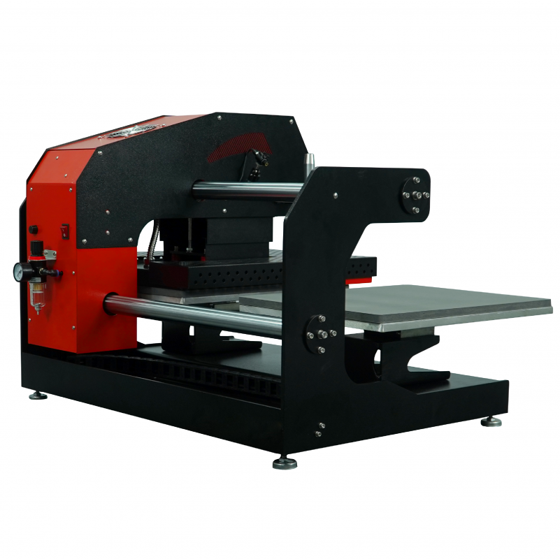 Plancha neumática 40 x 50 de sobremesa de dos puestos de trabajo, diseñada para utilizarla en las diferentes técnicas de personalización