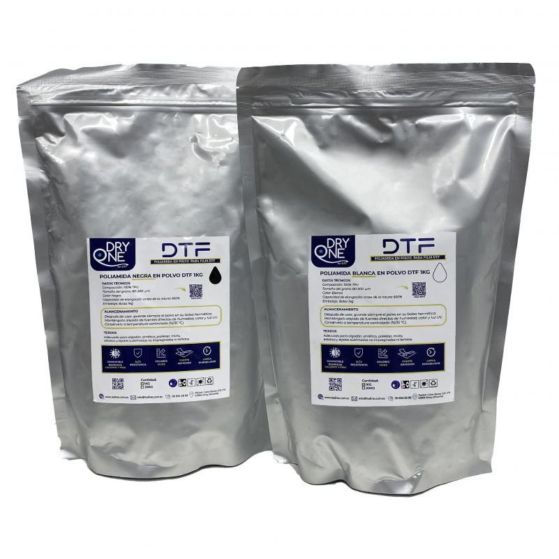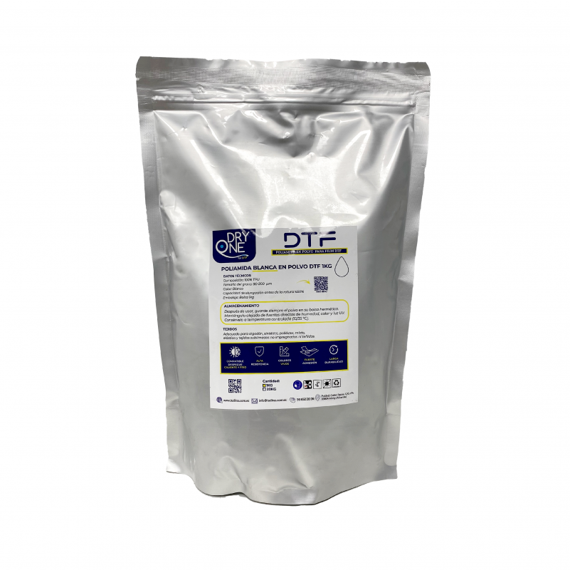Poliamida ideada para adherir tintas a tejidos mediante la técnica DTF. Crea una fina capa adhesiva sobre la tinta húmeda depositada en el film de soporte.